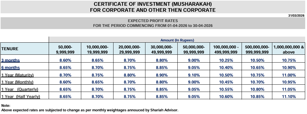 Certificate of Investment (Musharakah based)