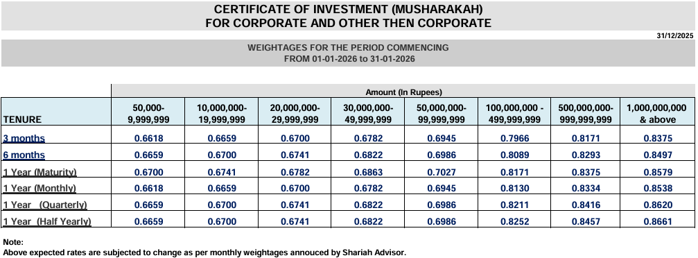 Certificate of Investment (Musharakah based)