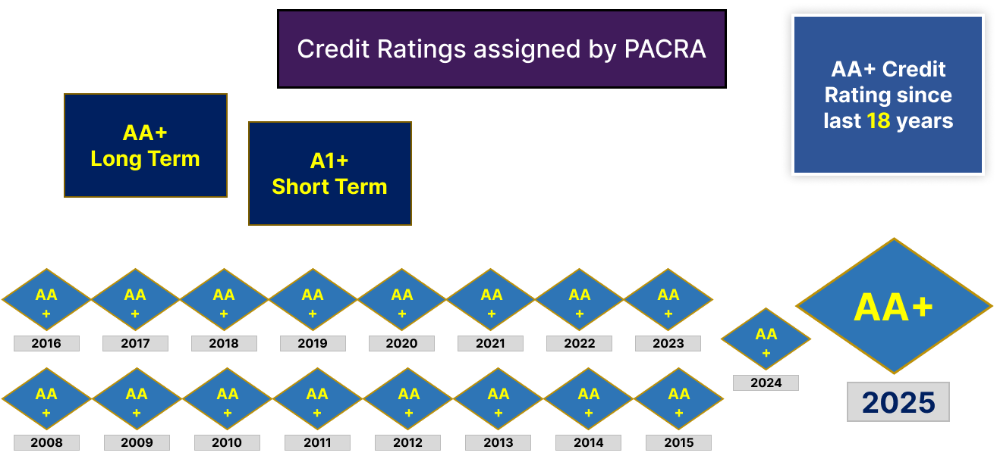 With continuing sound financial positions, FHM is maintaining “AA+” credit rating since last several years. According to PACRA vide their press release dated 19th September 2025, the FHM was assigned a rating scale of AA+ for long-term and A1+ for short term. As per PACRA’s assessment, these ratings reflect First Habib Modaraba’s strong business profile emanating from healthy asset base, sound asset quality and sustained profitability. These ratings denote a very low expectation of credit risk and IndicatIndicate very strong capacity for timely payment of financial commitments.