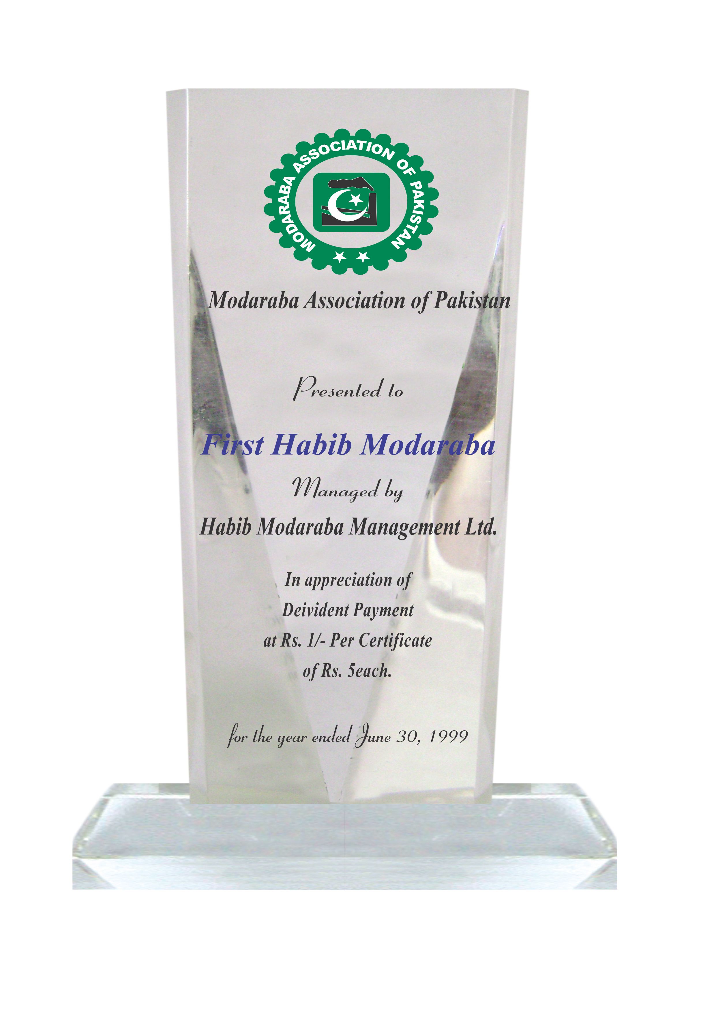 Allhamdulillah, First Habib Modaraba (FHM) meets the said criteria every year since last several years. So far FHM has received 23 awards as “Best Performing Modaraba Award” within last 24 years from above association.