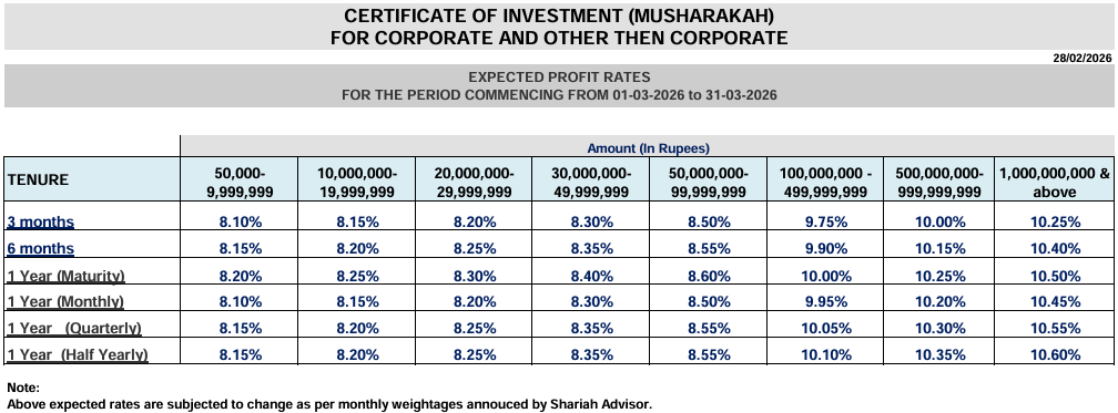 Certificate of Investment (Musharakah based)