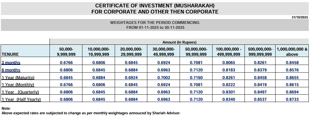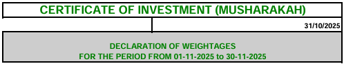 Certificate of Investment (Musharakah based)